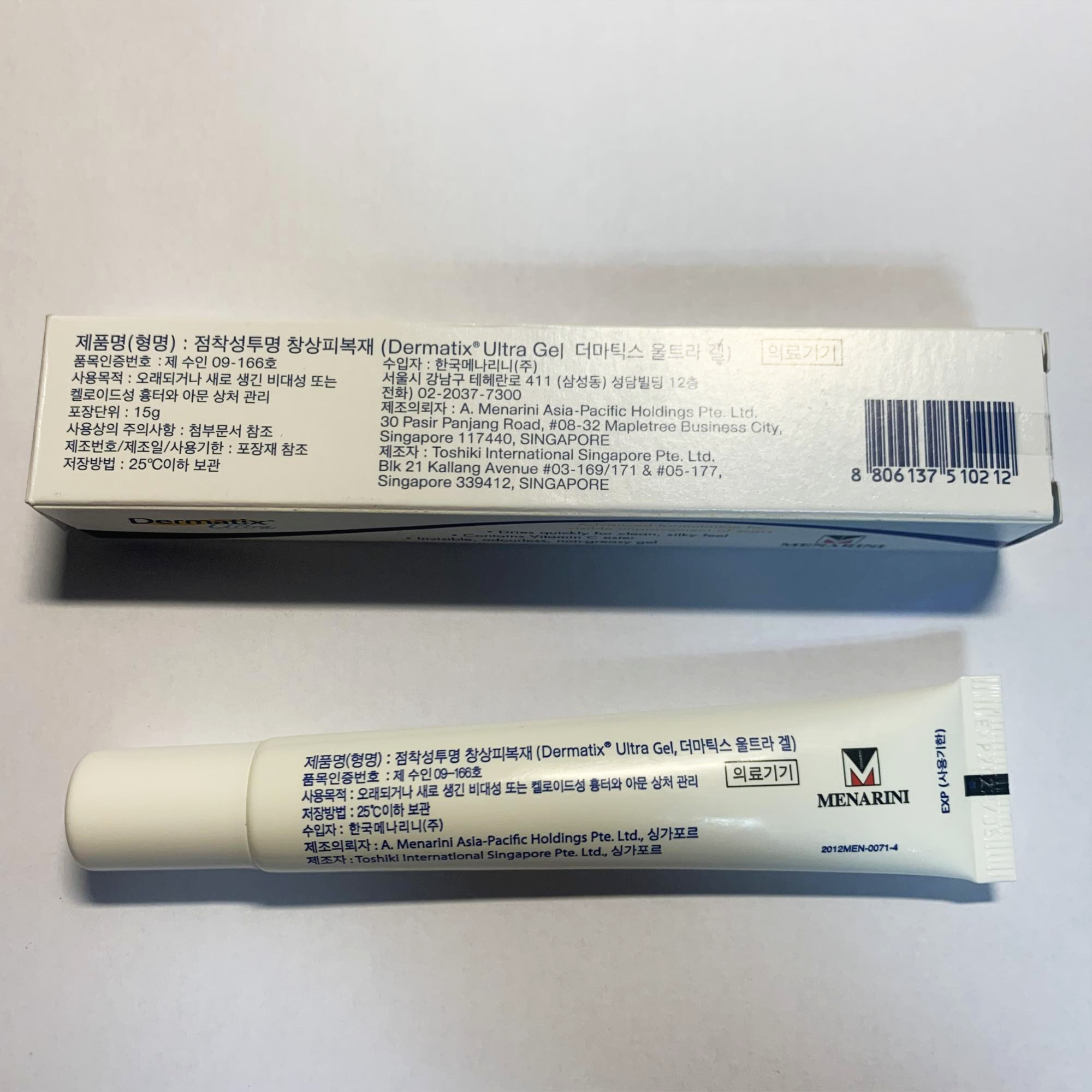 또한 더마틱스울트라 겔은 실리콘 겔제로, 피부에 흡수되지 않고 흉터를 물리적으로 덮어준다는 것을 알 수 있다.